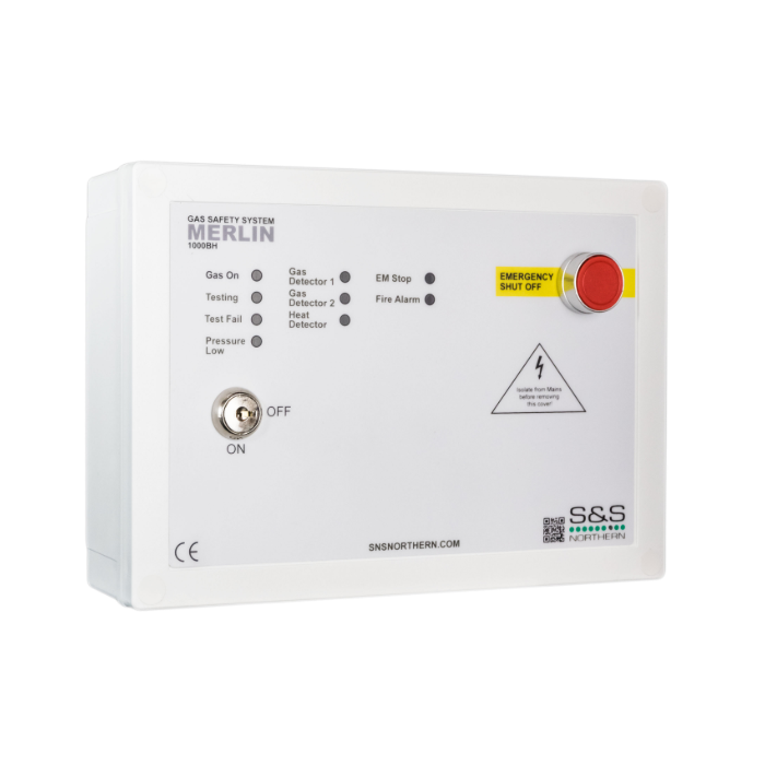 The Merlin 1000BH gas pressure proving system complies with Building Bulletin 100 (BB100) for fire safety in schools and is designed for use in boiler houses. This panel is to be used to carry out a gas proving test on the pipe work in order to highlight if there is a gas appliance open or a gas leak. The Merlin 1000BH is designed to give the user full control over the incoming gas supply with the lockable key-switch operation.