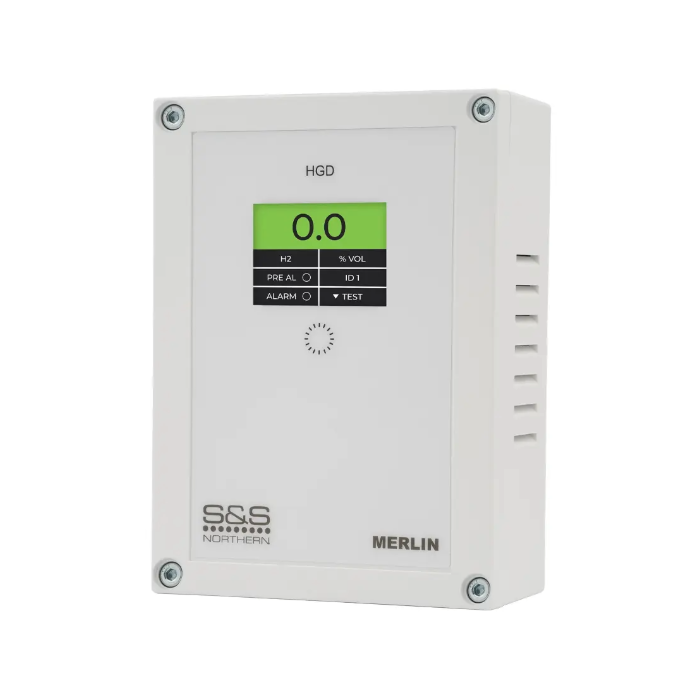 Introducing the S&S HGD Series 100 Hydrogen Detector will monitor hydrogen gas build-up in storage rooms and facilities that house batteries. The detector provides terminal block connections for single-phase 230 AC, 24VAC or 18-60VDC power. Detected Hydrogen levels are displayed in % Vol and traffic light indication – Green (Normal) Yellow (Warning) Alarm (Red).
